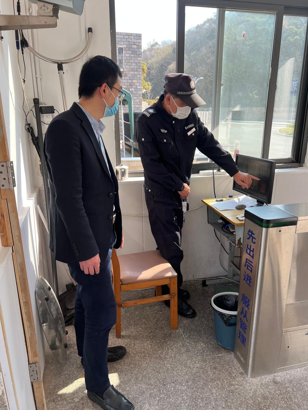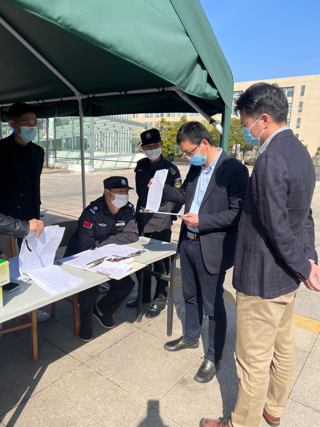检查中,根据学校疫情防控重点,实地查看学校大门、集中隔离观察点、中邮驿站、快递消毒点等关键点位,聚焦学生出校审批、外来人员来校报备等关键环节,仔细查看登记资料,详细询问落实情况。