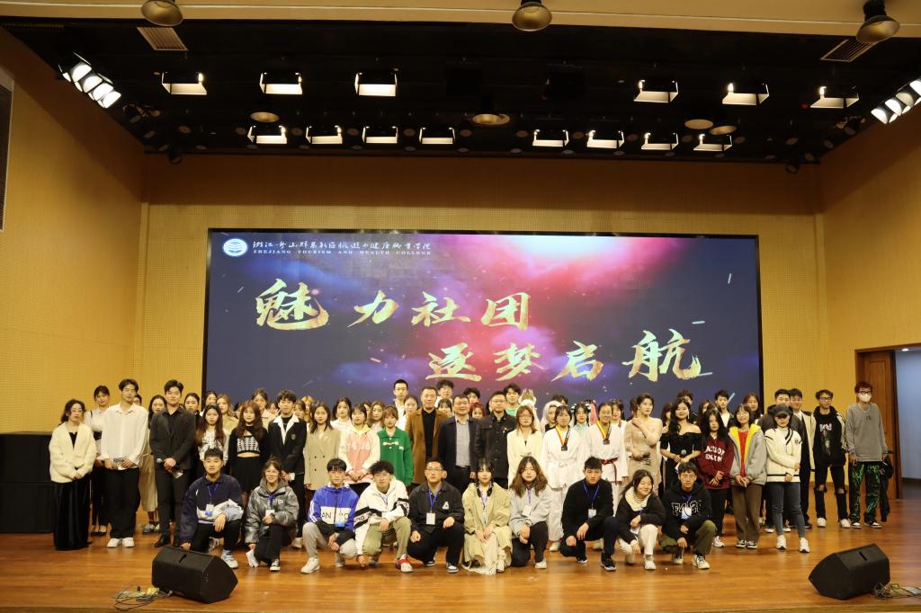 东风送暖,春天的旅健校园生气盎然,青春洋溢,大讲堂内朝气蓬勃。2022年4月1日,由校团委主办、社团部、大学生艺术团承办的“魅力社团 逐梦启航”第五届社团文化节社团特色节目展演在致远大讲堂拉开帷幕。党委委员、副校长孔志华,学工部副部长郑永骥、健康学院党总支副书记王珊珊以及校团委副书记冯磊、校团委干事陈艺璇来到展演现场。