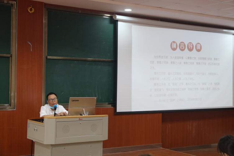 为深入学习贯彻习近平新时代中国特色社会主义思想,巩固深化“不忘初心、牢记使命”主题教育成果,主动翻开“党史书”,用心上好“百年党史”这门必修课,从党史中汲取丰厚的思想滋养,健康学院党总支书记胡炳波于4月13日在明德楼507为健康学院积极分子上了一堂关于“党史中的青春力量”的党课。