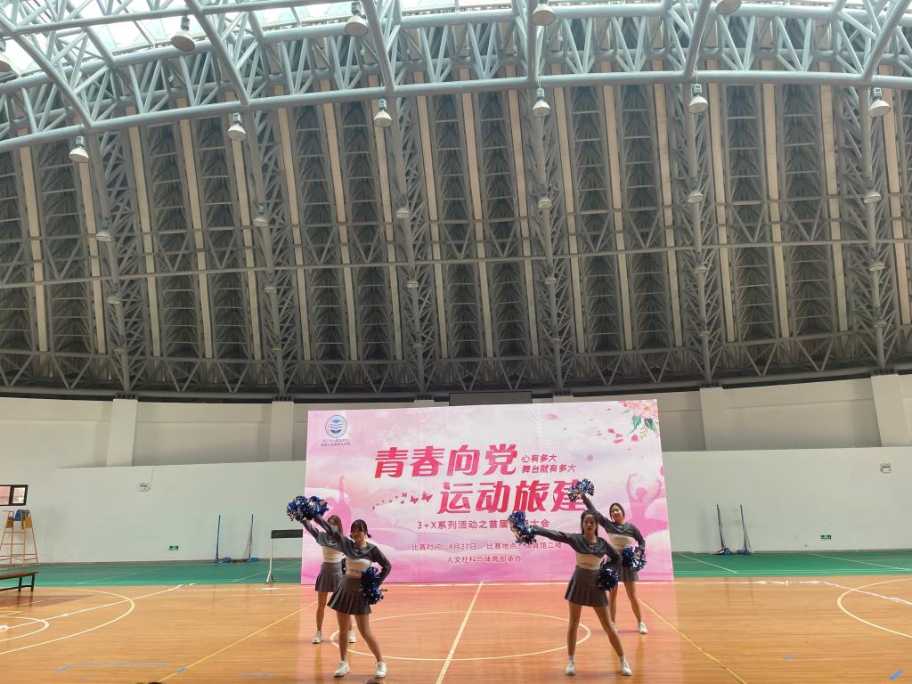 心有多大,舞台就有多大。为全面贯彻中共中央办公厅、国务院办公厅印发的《关于全面加强和改进新时代学校体育工作的意见》,备战选材大学生操舞大赛,丰富学生课外活动,拓宽学生展示自我的平台,促进学生全面发展,我校于2022年4月27日成功举办了“青春向党·运动旅健”3+X系列活动之首届操舞比赛。