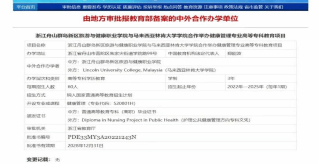 近日,我校与马来西亚林肯大学学院合作举办健康管理专业高等专科教育项目正式获浙江省教育厅批复,教育部备案。