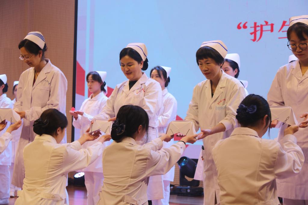 今年护士节的主题是“关爱护士队伍,护佑人民健康”,同学们通过歌曲、舞蹈、情景剧、相声等精彩节目展示了护理人的精神风貌,传递着护理人的初心使命。在授帽仪式上,护理前辈、学院老师亲手为“准护士”们戴上一顶神圣的燕尾帽,点燃象征着南丁格尔精神的烛火。护理学生手捧红烛,宣誓牢记南丁格尔“竭诚协助医师诊治,务谋病者之福利”的誓言,完成由护生到护士的成长与蜕变。