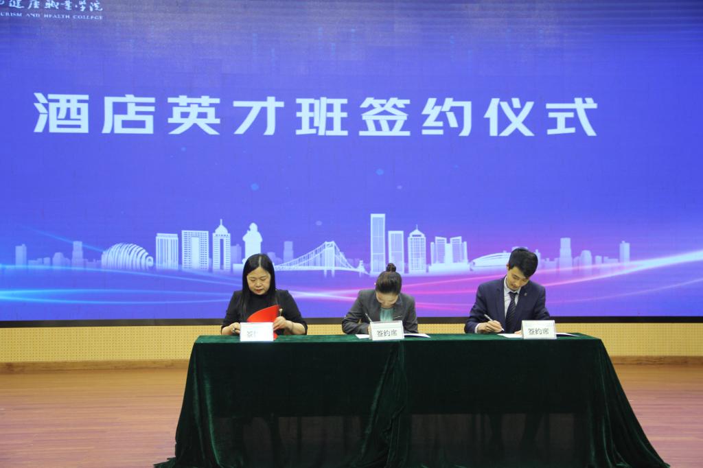 开幕式上,酒店英才班签约仪式,旅游学院党总支书记、院长杨奇美与各酒店代表及学生代表签订了三方合作协议。李副校长为各酒店代表颁发了导师聘书。在拜师仪式上,各位英才班同学为导师奉茶,导师为今年实习的酒店英才班学生授见习领班徽章,学生为导师献鲜花。酒店英才班的成立是一件大好事,校企双方将共同培育学生,不断提升我市酒店行业人才质量。