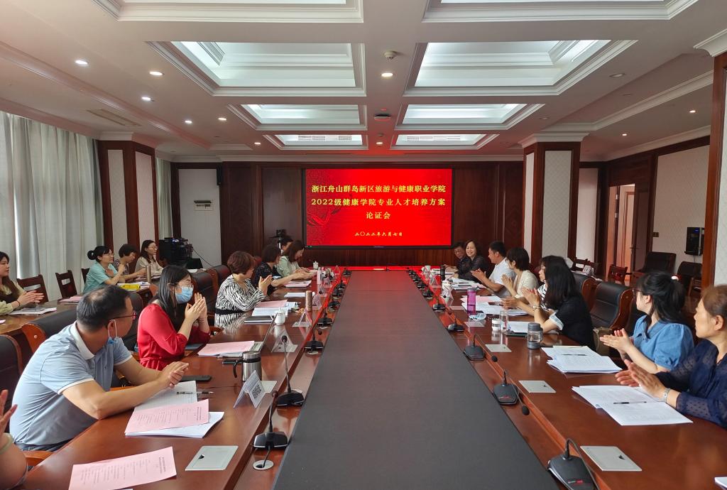 本次论证会邀请了宁波城市职业技术学院旅游学院院长章平、舟山医院副院长袁惠萍、舟山百姓医药连锁有限公司总经理刘爱童、舟山妇女儿童医院产科副主任护师周丹等专家到会指导。校长顾问徐澍敏、副校长李涛,教务处处长邬玮玮、副处长严倩,人文社科与体育部教师代表,我院领导班子、各教研室老师、学生代表参加了会议。