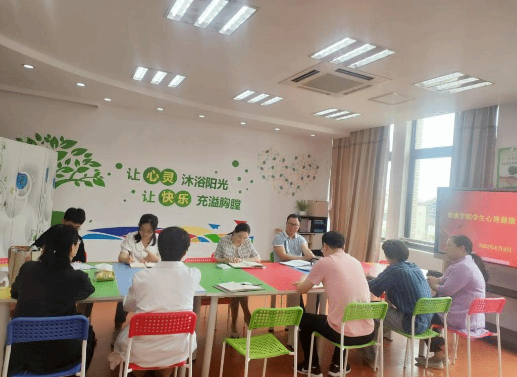 2022年6月9日,健康学院在仁爱楼二楼心语工作室召开学生心理健康工作研讨会,学院党总支书记胡炳波,辅导员林弋凯、毛雨婷、陈兴克,班主任代表王晓燕、丁优娜、丁璟琳、邱静参加研讨,学院党总支副书记王珊珊主持会议。