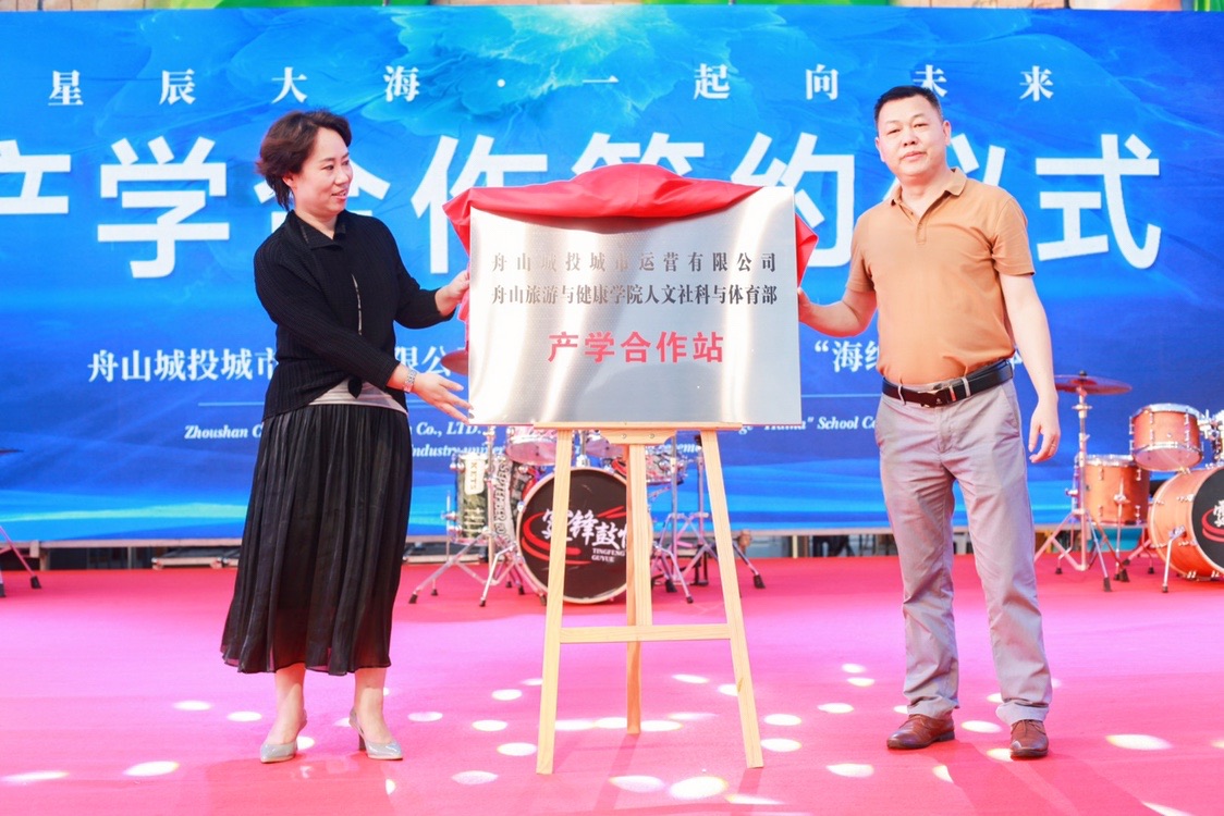 2022年8月6日下午,我校与城投城市运营公司“海纳学共体产学合作工作站”授牌仪式在舟山儿童公园隆重举行。舟山旅游健康职业学院人文社科与体育部党总支书记、主任张毅与舟山城投城市运营有限公司副总经理、儿童乐园管理中心主任苗董儿出席仪式,我校“海纳学共体”教师团队成员和城投公司代表列席参加。