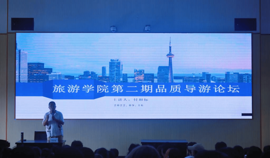 9月16日,旅游学院邀请了浙江文旅厅“金海螺”获得者、舟山市E类高级人才、舟山高级导游付相标为导游专业学生进行公益讲座,本次讲座的主题是《舟行千里,山载万卷》--在岁月的光影里解读不一样的美好时光。