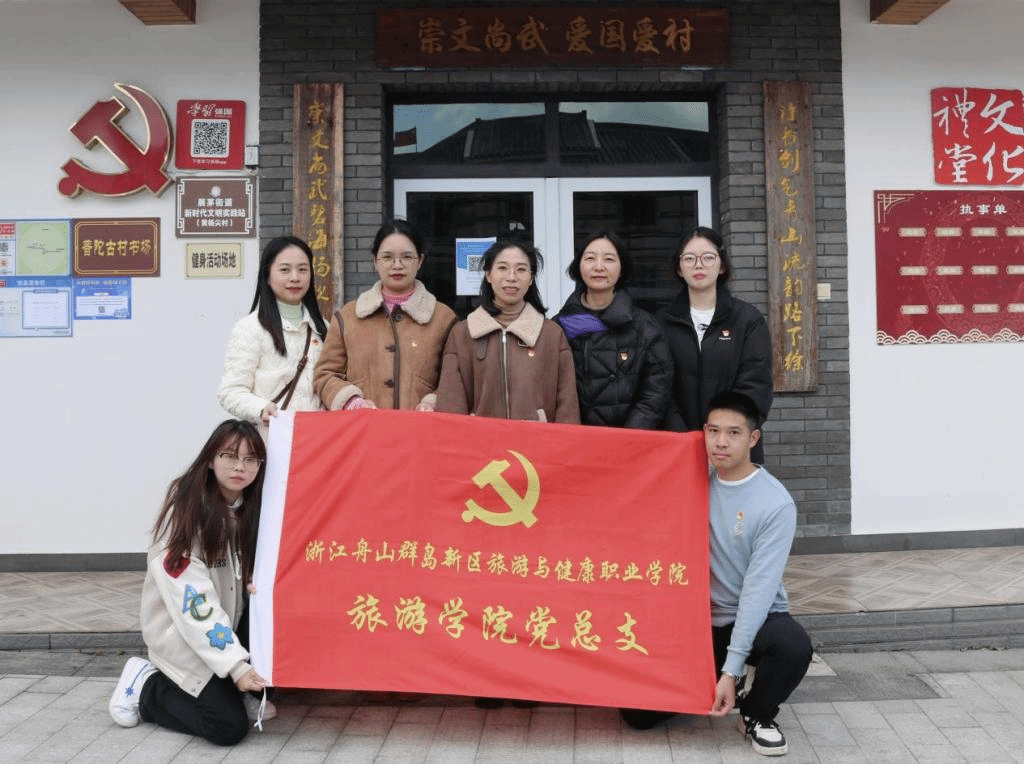 为全面学习贯彻党的二十大精神,加强党建引领,赋能乡村振兴,进一步探索乡村振兴发展新模式,从而汲取奋进力量,增强党组织的凝聚力和战斗力,旅游学院党总支于2022年12月3日组织党员教师和学生前往普陀区展茅街道黄杨尖村路下徐开展“探索共富之路 助力乡村振兴”主题党日活动。