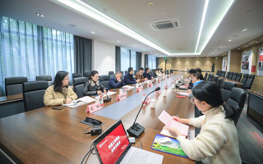 23日下午,我校调研团队与浙江经贸职业技术学院相关领导、教师围绕其全国党建样板支部建设情况、党建双创培育工作、党建样板支部验收要点等问题进行深入探讨和广泛交流。浙江经贸职业技术学院党委委员、组织部部长邱雷鸣介绍了学校办学情况与党建工作,财务会计学院党总支副书记石磊分享了“样板支部”建设工作、建设成效等,如何将党建工作与教学、科研、学科、育人、社会服务等中心工作紧密结合,进一步巩固师生联动、凝心聚力的局面,总结并固化可推广、可示范的典型经验等。随后,人文社科与体育部第二党支部与浙江经贸职业技术学院会计教研室党支部开展党建样板支部举行了共建结对仪式。