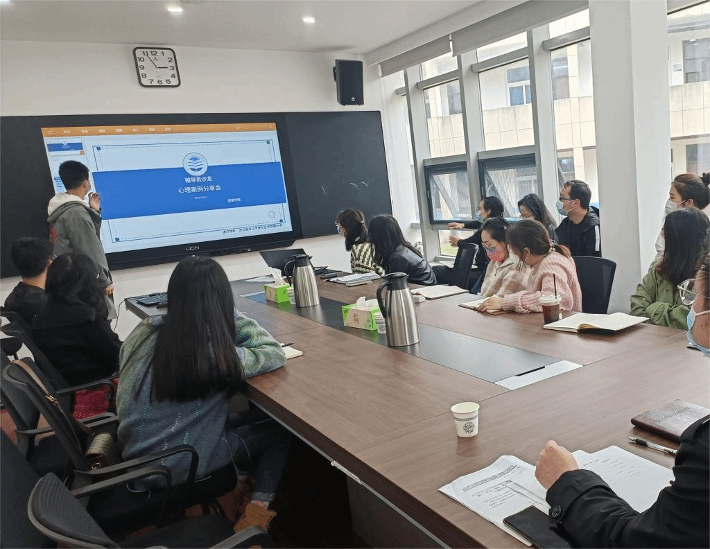 会上,心理健康教师陈兴克就本学期心理摸排的结果进行了汇报。汇报将心理问题数据化、可视化,为进一步加强我校心理健康工作提供了依据。随后,各学院案例分享人从案例背景、分析与应对、反思与启示这三个方面分享了本学院学生心理工作的典型案例。