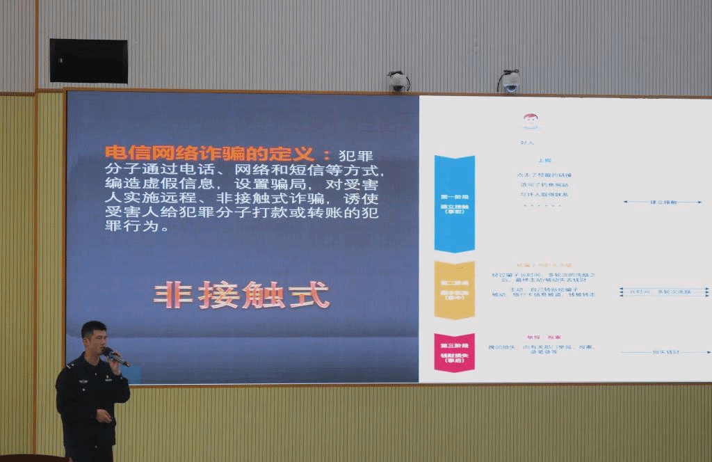 为提高大学生群体对网络诈骗的鉴别能力,加强安全责任意识,旅游学院于4月21日邀请普陀区朱家尖派出所庄浩扬警官在明德楼307开展“警官进校园”反诈讲座。庄浩扬警官现身说法,为同学们带来了别开生面的反诈课堂。