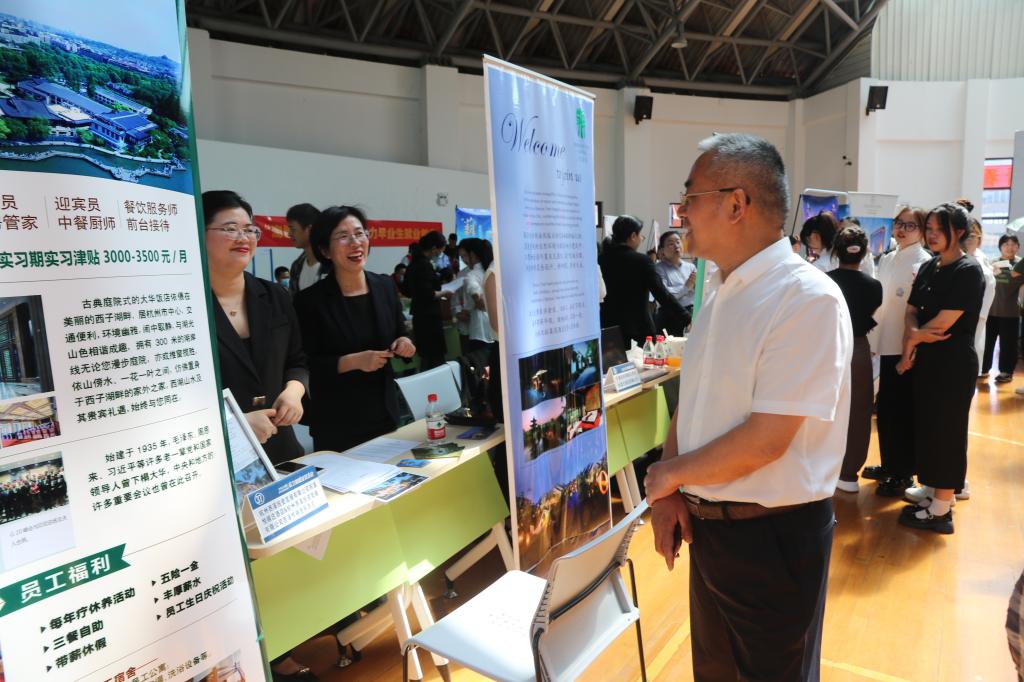 本次招聘会共推出400余个就业岗位、700余个实习岗位,涵盖旅游类、商务类、综合类等相关专业;普陀山政务服务中心为学生提供了各类咨询服务,包括大学生就业创业优惠政策、个体工商户和企业开办流程、人力社保、征兵宣传、户口迁移等。校长郑能波访企拓岗,与多家企业代表就专业特色、人才培养、用人需求等方面进行了深入交流。现场共吸引了500余名学生参与,建立就业(实习)意向登记328人。