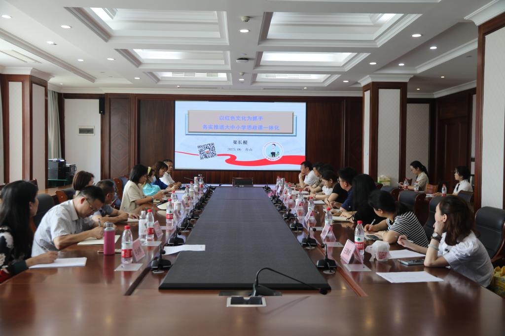 张毅主任在研讨时指出:坚持以习近平新时代中国特色社会主义思想为指导,聚焦立德树人根本任务,推动用党的创新理论铸魂育人,构建全员、全程、全方位“大思政”育人格局,大中小学思政课一体化建设是重要的抓手和路径,今后学校将积极发挥高校优势,立足本土红色资源和思政元素,强化问题导向和育人目标导向,充分调动学校及社会力量和资源,落实好学校《全面推进“大思政课”建设的实施方案》中的“五个一行动”,推进大中小学思政课建设一体化的学校结对、教学研讨(集体备课)、思政金课展示、教材衔接调研、校校(校地)思政工作一体化工作机制等工作,在推进大中小学思政课一体化建设中建好“大课堂”、搭好“大平台”、建好“大师资”。