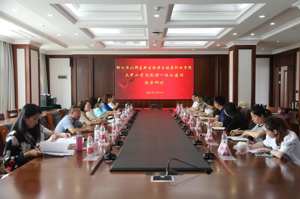 本次研讨活动还邀请了学校属地的朱家尖中学、朱家尖小学和原属地在朱家尖的舟山旅游商贸学校的德育工作分管领导和相关教师代表。会议由人文社科与体育部总支书记、主任张毅主持,部门全体思政教师参会,校党委委员、副校长孔志华出席会议。