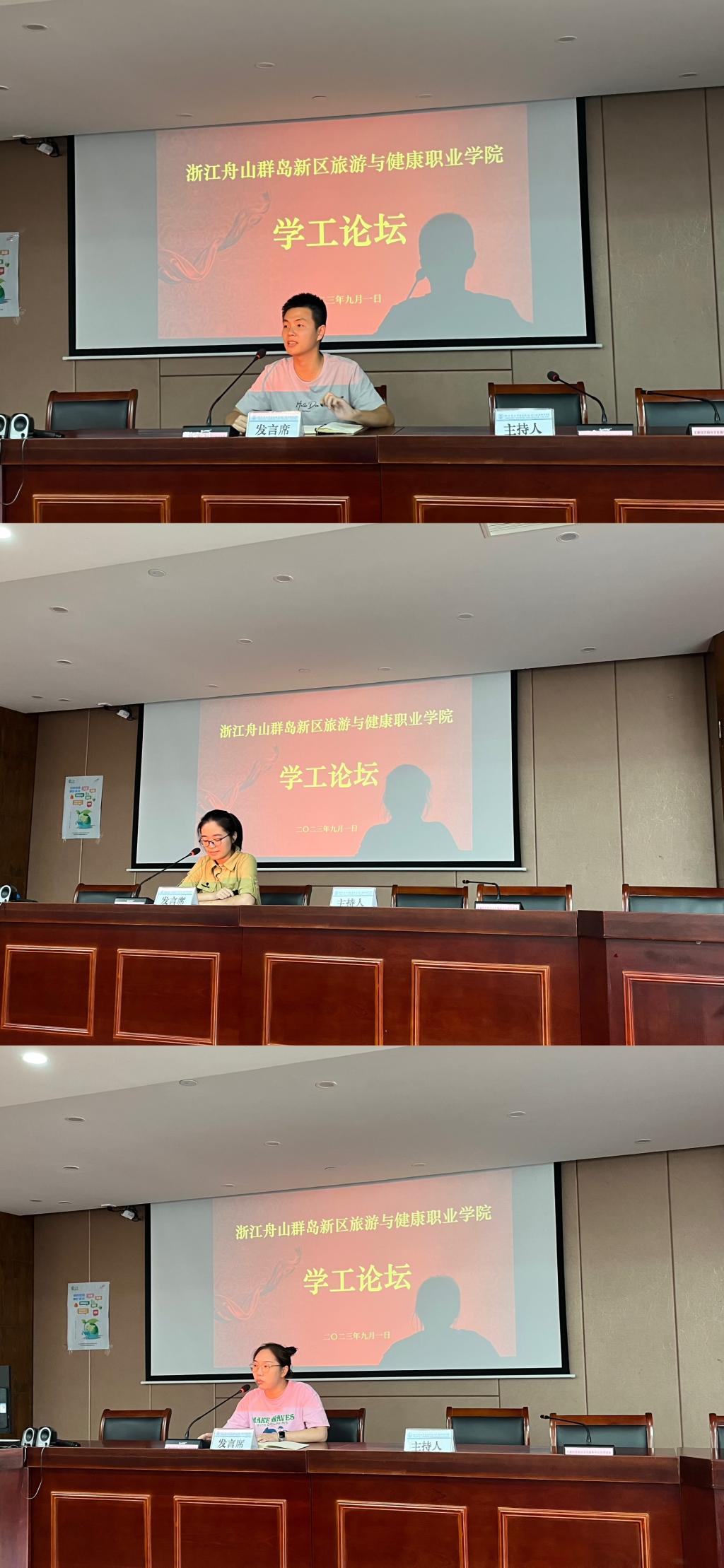 专题培训结束后,与会学员就学生日常教育管理存在的问题和改进意见、劳动实践育人如何迭代升级、“一站式”社区工作如何开展等进行了分组讨论,并对此次学习感悟进行了交流分享,大家均表示本次培训内容丰富、干货满满,对日后工作的开展大有裨益。学工论坛上,旅游学院李远铭,健康学院陈启航,商务学院袁盈三位辅导员分别结合本次培训的感受和工作实际,做了精彩的发言。