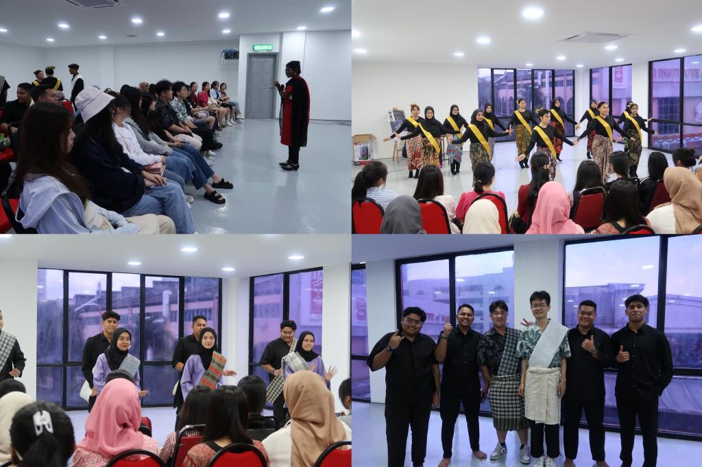 8月10日,研学项目结业仪式于林肯大学学院主教学楼多功能厅顺利举行,全体成员完成所有既定任务顺利结业,获得马方颁发的研学结业证书。在送行餐会上,研学团观看了由林肯大学学院学生编排表演的马来西亚传统文化节目,学生们还穿上了当地特色传统服饰,文化沟通交流氛围融洽。