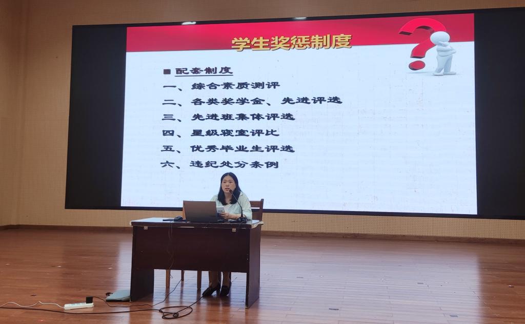 开学典礼结束后,学院还开展了2023级新生规章制度教育。学工口的袁盈、倪侃、蒋丹丹三位老师分别从学生团委专项管理、学籍日常及安全管理、学生奖惩管理等三大块内容作了详细的解读。