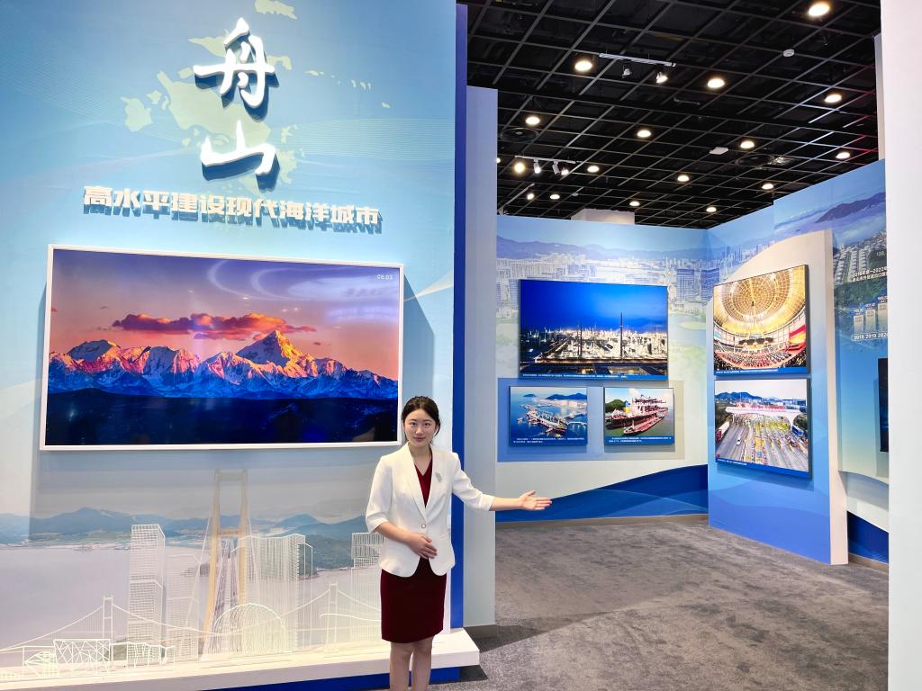 同时,作为舟山板块的讲解员,张雅彬通过认识舟山在“八八战略”指引下所取得的成就,探索了以前从未了解过的知识领域。舟山充分利用自身资源,大力发展海洋经济,实现了从海防小城到海上城市花园的巨大蜕变,丰富的海洋和风能资源以及船舶制造维修产业都为舟山华丽转身奠定了坚实基础,作为在舟学子,她感到无比骄傲。