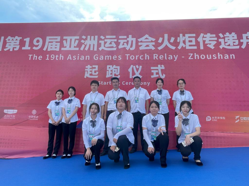 9月13日,杭州亚运会火炬传递舟山站在舟山“六百年渔港”沈家门启动,我校旅游学院23名志愿者为亚运“薪火”相传保驾护航。