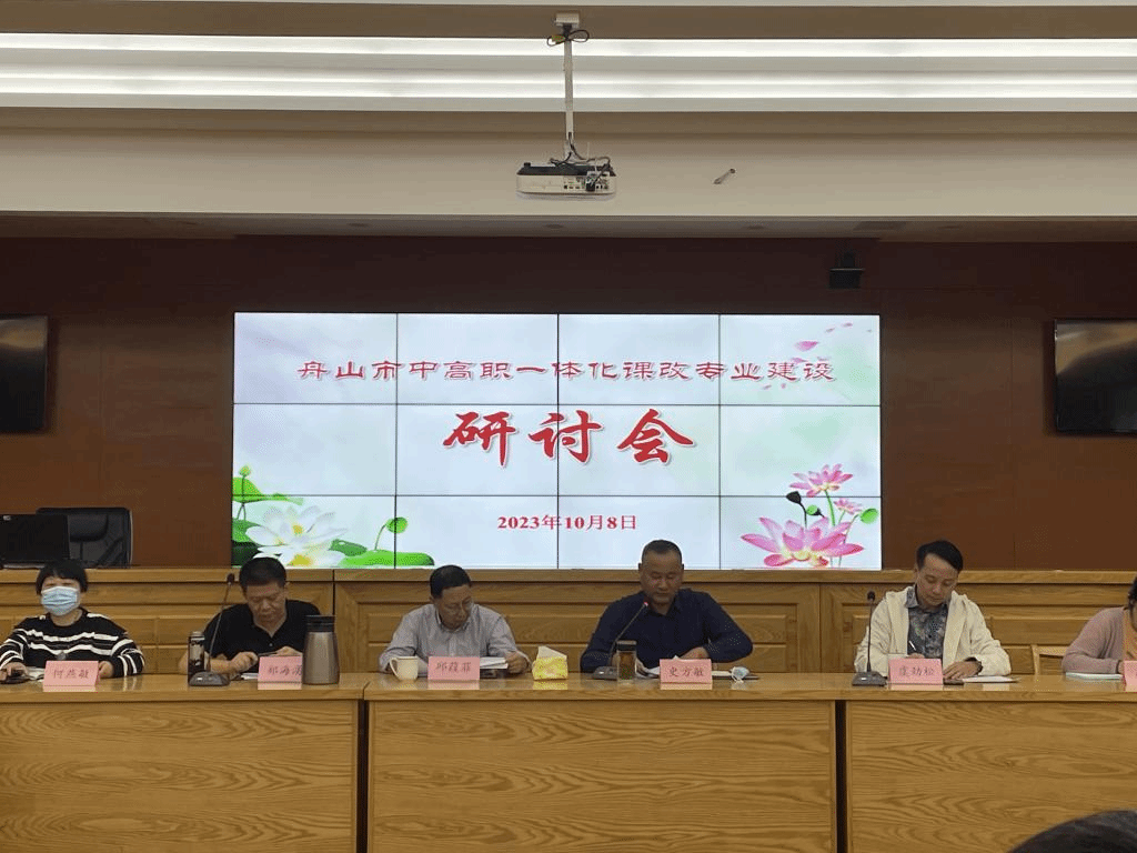 为做好舟山市中高职一体化课改专业建设工作,提高中高职一体化人才培养质量,10月8日由舟山市教育局职成处、舟山市开放大学组织召开的舟山市中高职一体化课改专业建设研讨会在舟山市开放大学顺利召开,会议由舟山市开放大学副校长史方敏主持。学校教务处处长邬玮玮、健康学院教学副院长马怡婷、健康学院护理专业教研室主任张敏,质量管理办公室李赫宇一行参加会议,共同就“中高职一体化人才培养情况”进行深入交流研讨。