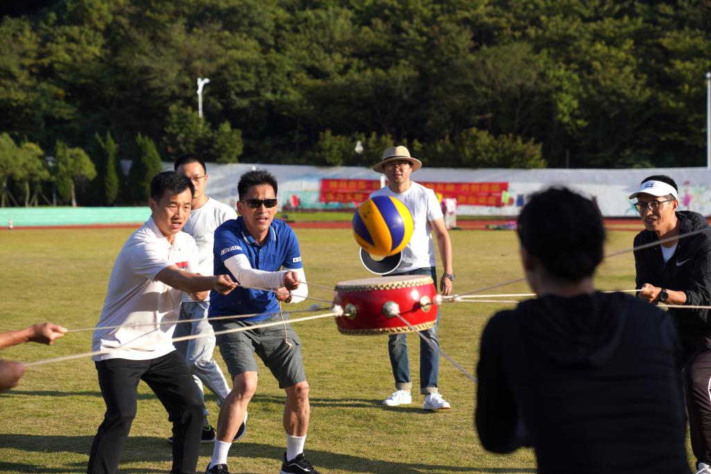本次趣味运动会共设置拔河比赛、跳长绳、同心击鼓3个集体项目。教职员工踊跃报名,本着“友谊第一,比赛第二”的精神积极参赛,全力以赴,各显身手,比赛场地洋溢着欢乐、昂扬、和谐的氛围。