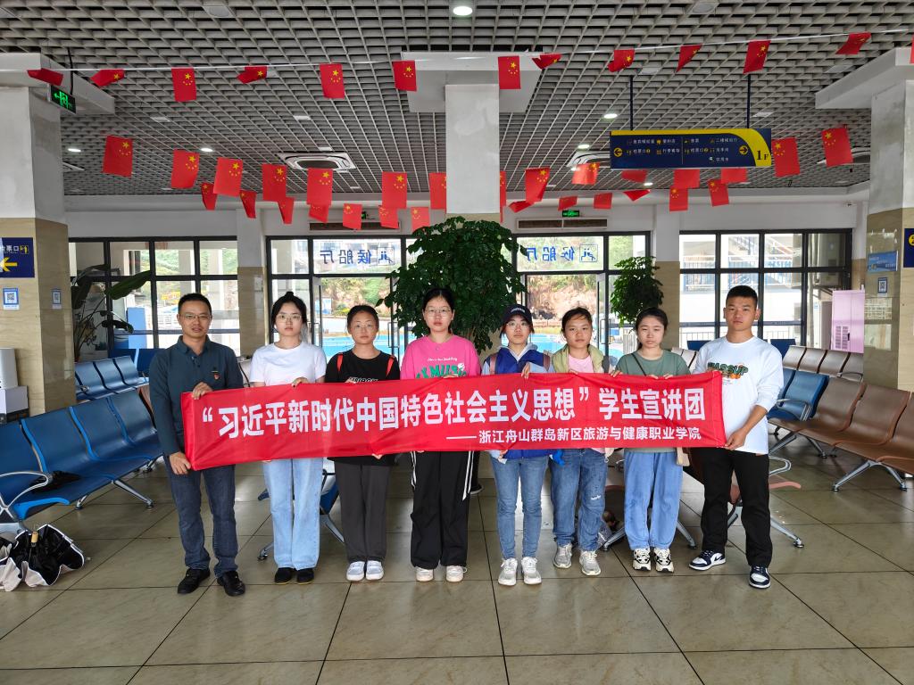 在共富思想宣讲环节,实践小队分别在庙子湖商业广场和客运码头候船大厅开展习近平新时代中国特色社会主义思想主题宣讲活动,师生代表向部分游客和居民简要宣传党委政府推进共同富裕和近年来发展海洋经济的宏观政策。此次宣讲活动,师生们准备充分,得到了居民朋友的大力支持,达到了预期目的。