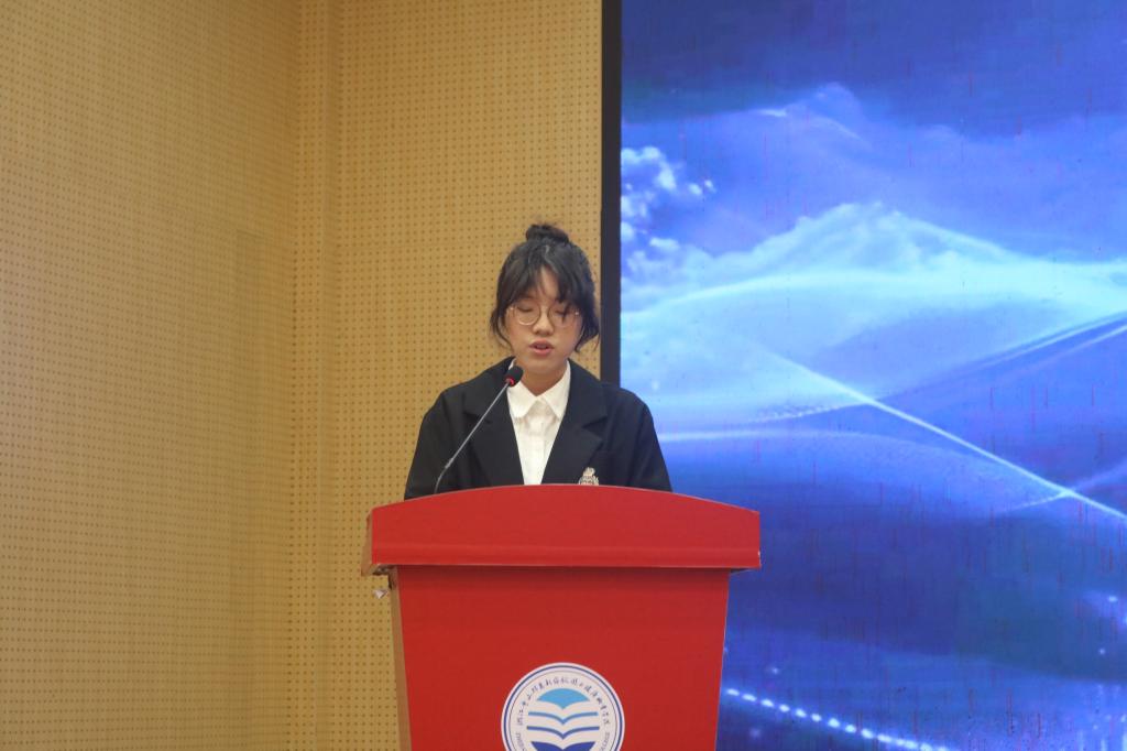 仪式上,带队教师代表李远铭、学生代表袁懿颖上台发言,出席会议领导为专项团队授旗。