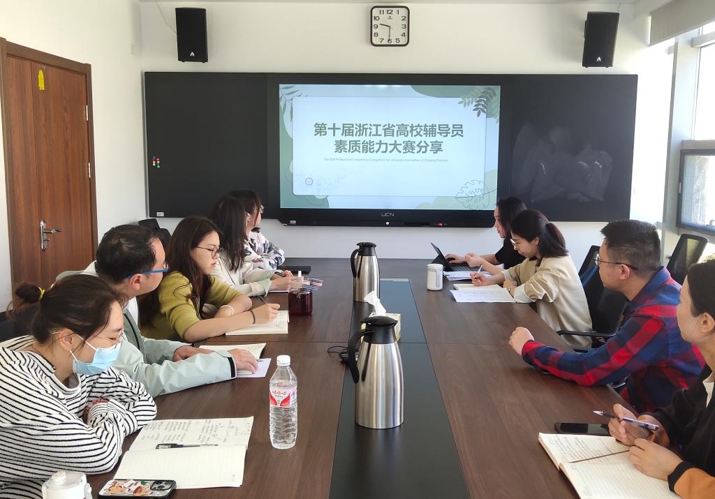 为促进辅导员队伍的专业发展和提升,强化以赛促学、以赛促建,不断提升我校辅导员综合素质,学生工作部于5月17日在学校慎思楼一楼研讨室召开本年度第二期辅导员沙龙。本次沙龙由学生工作部副部长郑永骥主持,学工线全体辅导员参加。本次沙龙由我校参加浙江省第十届高校辅导员素质能力大赛的选手和观摩人员进行分享。