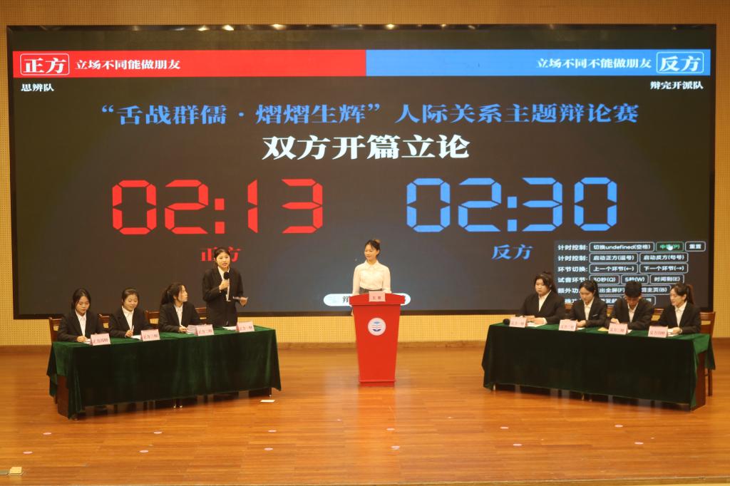 本次辩论赛不仅丰富了同学的校园生活,更是作为一个不同观点碰撞和多种思维较量过程,促进了同学们对人际交往议题的思考,有利于更好地处理人际关系。