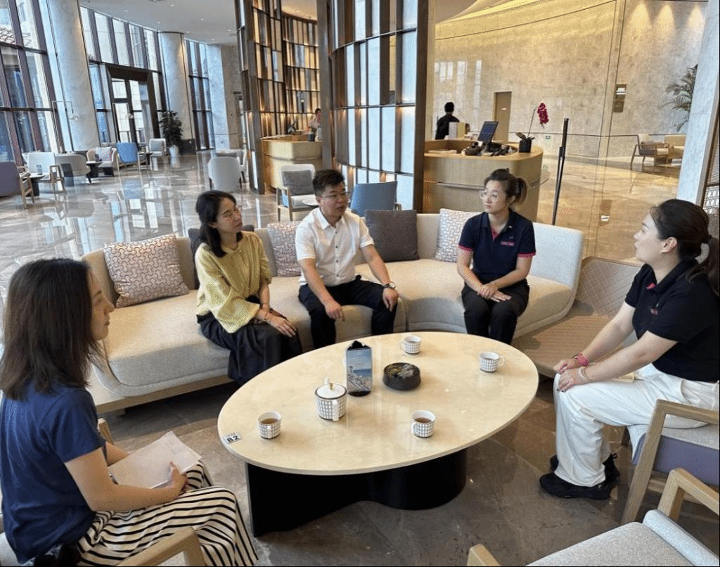 酒店负责人介绍了酒店企业文化、发展情况和用人需求,并对我校实习生的专业素质表示肯定。双方就如何实现实习就业一体化作了深入探讨,同时就岗位要求、福利薪酬、晋升通道等内容进行了交流。黄副校长感谢三家酒店在人才培养环节中给予的支持,愿与企业加强合作,共同培养更多优秀人才。