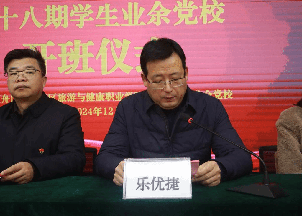 12月13日,我校第十八期业余党校开班仪式在求真楼3楼多媒体会议室举行。学校党委委员、副校长黄承,学工部部长乐优捷,组织部副部长唐洁君,旅游学院党总支副书记郑婷璐,商务学院党总支副书记冯磊出席开班仪式。仪式由学工部副部长、团委书记郑永骥主持。