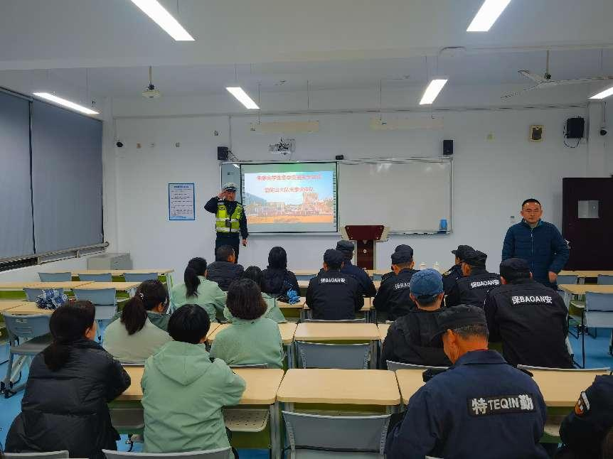 根据省教育厅和市教育局相关通知精神,为进一步提升师生的交通安全意识,预防和减少交通事故的发生,12月11日下午,学校邀请普陀山交警大队朱家尖中队指导员陈增辉等3人,以“安全出行,文明交通”为主题开展交通安全培训,学校保卫处及全体安保人员参与此次培训。