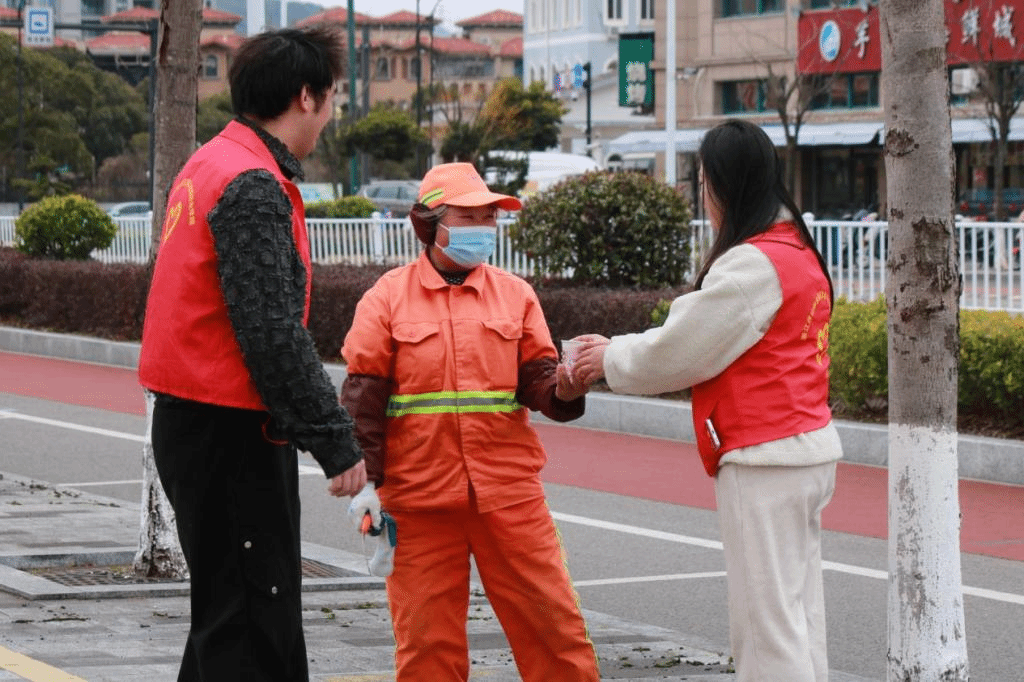 在街道,志愿者们设立“爱心驿站”,为环卫工人、快递员等人群提供免费饮水和休息区,在寒风中送上温暖。