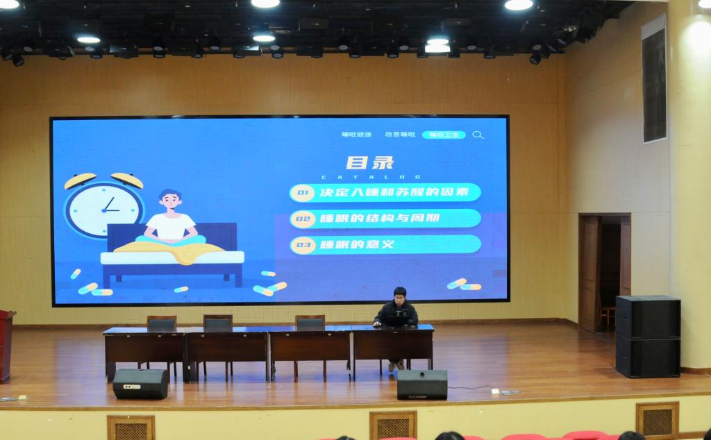 讲座围绕睡眠的生理机制与心理健康展开。主讲人结合前沿研究成果与生活实例,系统剖析了影响睡眠与觉醒的核心因素,并深入浅出地讲解了“非快速眼动睡眠”与“快速眼动睡眠”的周期结构。同时主讲人通过生动的实验案例揭示了睡眠对记忆整合、学习力恢复、情绪波动及免疫力下降等方面的影响。最后主讲人介绍了科学睡眠的要点,呼吁同学们重视睡眠健康。