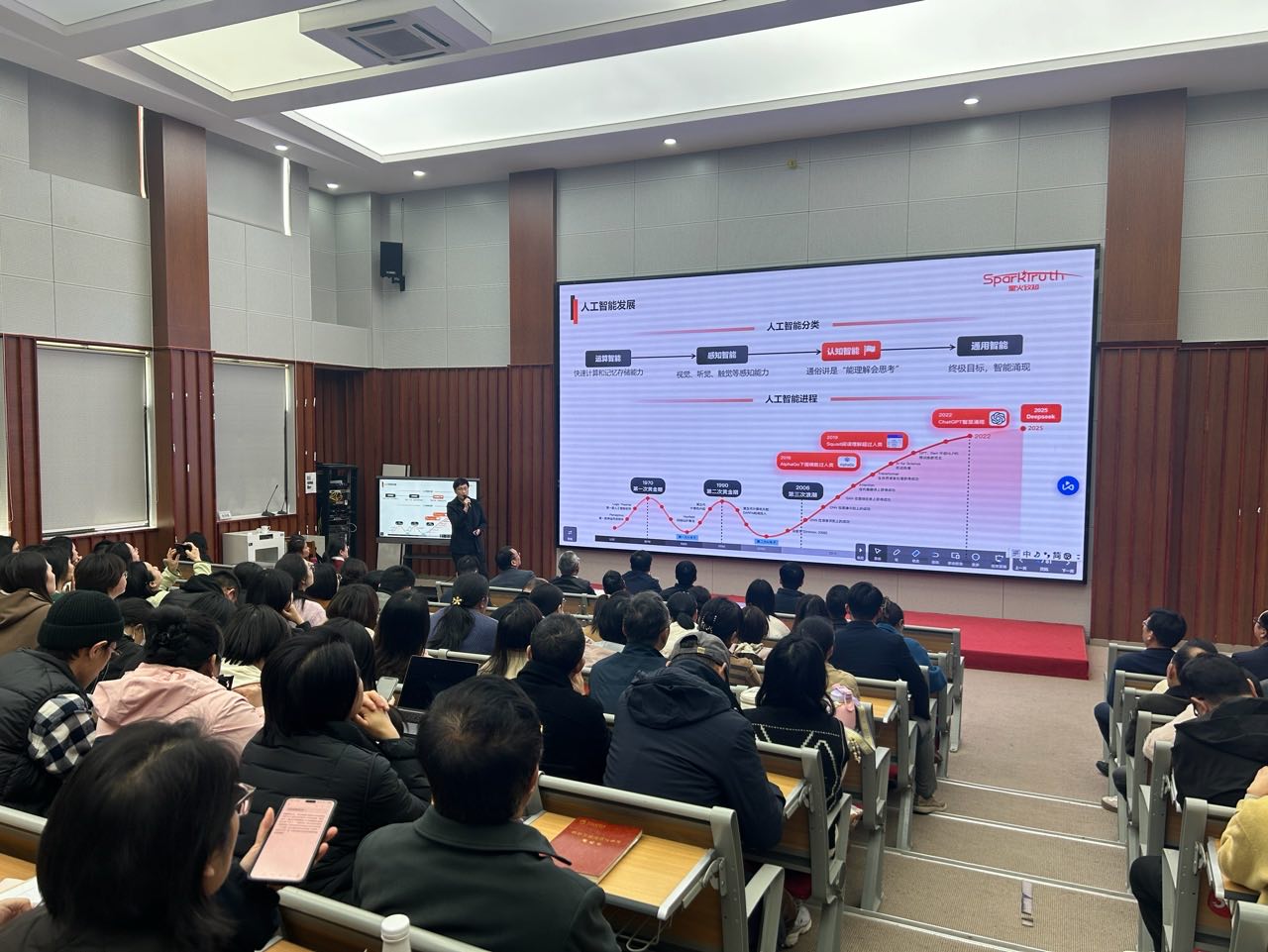 4月2日下午,学校举办人工智能应用专题讲座,星火致知CTO黄晨新应邀担任主讲嘉宾,全体教职工参加培训。