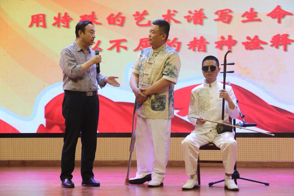 校党委委员、副校长黄承致欢迎辞,他向远道而来的艺术家们表示最热烈的欢迎和最崇高的敬意,并表示北京市残疾人艺术团的艺术家们以艺术为媒介,传递着自强不息、乐观向上的精神力量,我们将在艺术家们的感人故事里,汲取团结奋斗的力量,凝聚推动学校高质量发展的动力。