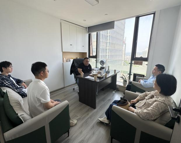 在江苏绿色国际旅行社杭州分公司进行行业分析交流会,主要聚焦当前旅行社业务板块和导游需求方向,探讨导游专业校企合作新模式。