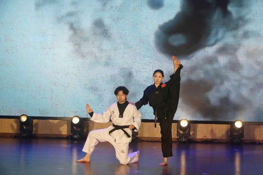 晚会以粉白渐变色调的舞台设计拉开序幕,晚会共涵盖11个精彩环节,开场舞《Meow》以灵动舞姿点燃全场,舞者谢雨津、戴可柔等人身着豹纹演出服,在月光投影与粉紫光束下演绎力量与柔美的融合。随后的古典舞《探窗》则以飘逸水袖与诗意编舞,诠释护理工作“刚柔并济”的职业特质。既有轻松幽默的小品《脆皮诊疗室》,以医患故事传递温情;也有热血澎湃的武术表演《武韵》,蒋紫馨、陆国政等人以跆拳道高踢、擒拿动作为护理人的“守护之力”写下注脚。拉丁舞《Red》以炽热节奏点燃全场,歌曲串烧《从心跳到白头》则以深情旋律致敬医护生涯的初心与坚守。晚会特别设置“技能之星”表彰环节,黄承副校长给省赛获奖选手赠送鲜花、送上祝福,勉励学子再接再厉,再创佳绩。