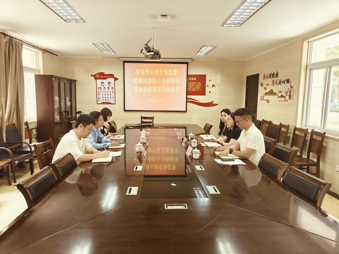 2025年5月19日,舟山市市场监督管理局普陀山分局局长戴跃波、消保科科长俞冉暄、副科长杨天一行莅临浙江舟山群岛新区旅游与健康职业学院旅游学院。旅游学院院长杨奇美、办公室主任王一、辅导员戚梦瑜热情接待并参与座谈。