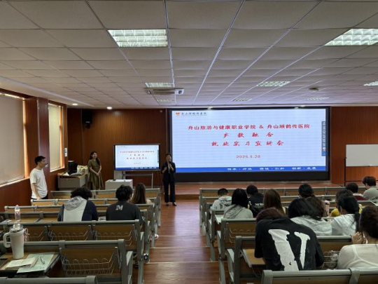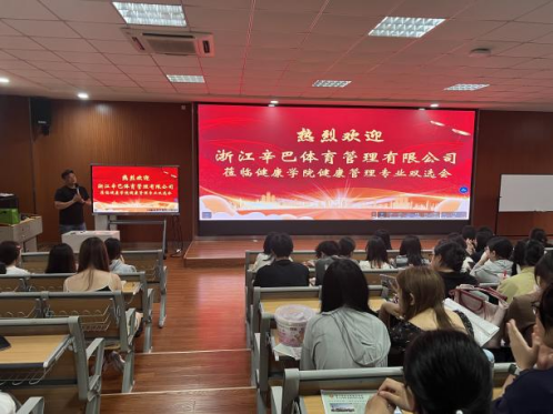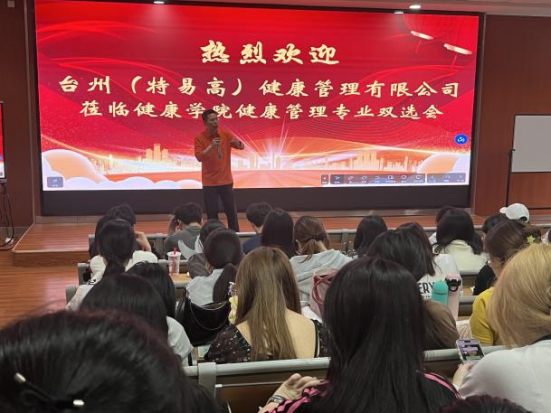 为深入推进产教融合协同育人,助力健康管理专业学子高质量就业,健康学院于5月28日至29日在明德楼举办了2023级健康管理专业实习双选会暨实习动员大会,2023级健康管理专业全体学生与专任教师参与。本次双选会以"提升实习质量,促进本地就业"为目标,邀请舟山顾鹤传骨伤医院、台州(特易高)健康管理有限公司等共12家企业参会,涵盖健康咨询、养老护理、电商直播、儿童体适能等多个领域。