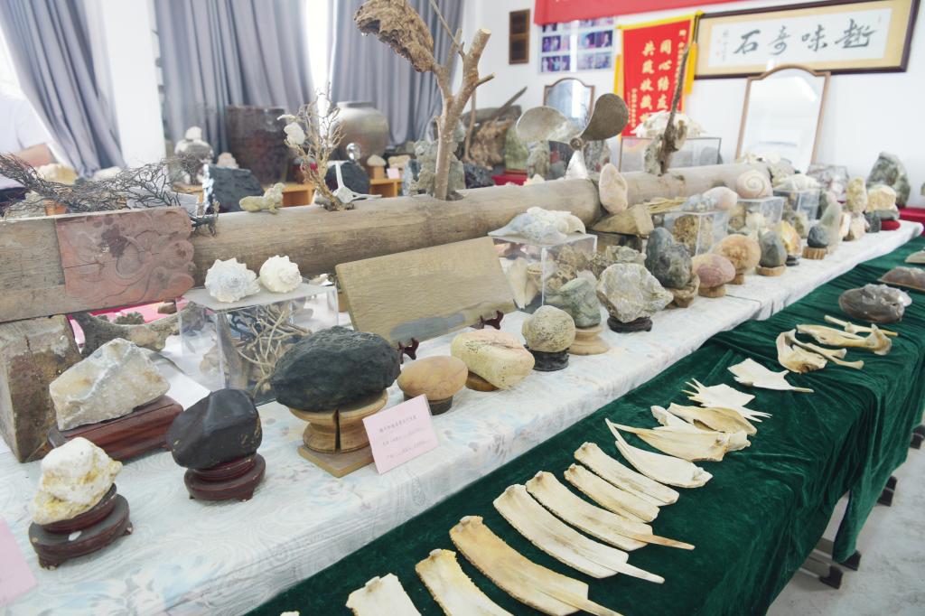 授牌后,鲍平和馆长陪同参观博物馆。该馆由其精心创办,专注收藏展示舟山本地奇石及多元民间文化藏品。馆内陈列奇石、瓷器、根雕、木化石及海洋生物标本等千余件,既有舟山本地珍藏、海上丝绸之路外贸瓷器,也有揭示海岛古气候与渔业资源的木化石、海洋生物骨骼,堪称一部“立体的海岛文化志”。