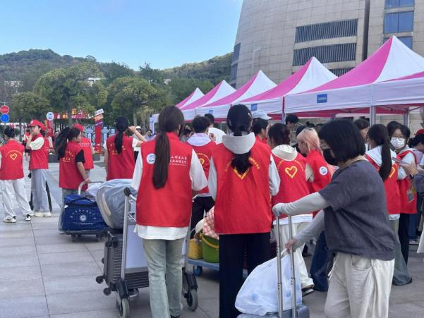 值得一提的是,汽车站的迎新志愿者们早早守候在出站口。他们主动接过新生手中的行囊,用热情的服务为初来乍到的学子卸下旅途的疲惫,传递校园的第一份温暖。志愿者们默契配合,或协助搬运行李,或引导前往接送专车,或耐心讲解校园周边交通,让远道而来的学子第一时间感受到家的温暖。