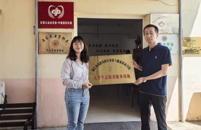 立项一周后,健康学院"登步暖阳志愿服务队"即联合舟山百姓医药连锁有限公司,走进普陀区登步岛沙头村居家养老服务照料中心,开展"浙哲共富行·青年社科志愿惠民乡村"专项志愿服务活动。与登步岛管委会共同为"大学生志愿服务基地"揭牌。基地建立后,将为登步岛老年群体提供持续性的健康监测、康复指导及科普宣教服务,这标志着我校青年社科志愿服务正式从“校园报名”升级为“省级立项、海岛实战”。