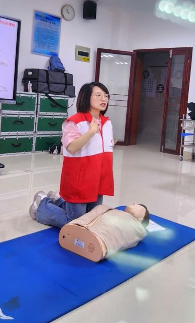 培训师资团队由健康学院12名红十字应急救护讲师组成,均具备丰富的急救教学与实战经验。理论教学环节,讲师团队以“科学性与实用性并重”为原则,系统梳理心肺复苏的核心要点。实操环节采用“分阶段递进式”训练模式,依托胸外按压模型、AED训练机展开。新生以15人小组为单位,在讲师指导下完成单人CPR全流程练习,系统掌握环境评估、呼救、按压与通气比例等关键步骤;并模拟真实急救场景,分组练习双人协作CPR及AED使用,强化“一人按压、一人通气、一人取AED”的分工意识。