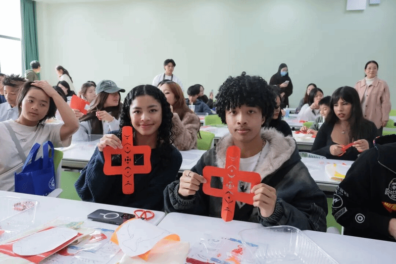 在舟山海洋文化剪纸课上,美国青少年们在老师指导下,将鱼虾蟹等海洋元素剪刻成形、贴于文创袋上,亲手制作的特色礼物承载着对中国手艺的喜爱。“我要把这个送给妈妈!”帕特里克自豪地展示自己的作品,除此之外,他还用红纸剪了“中”和“美”两字。