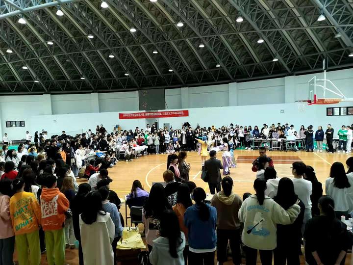 长袖飘飘,轻移莲步,这是学院正在进行的社团活动表演。体育馆内人声鼎沸,汉文化社、翰墨社、动漫社、香艺社……学院的各种社团围坐一圈,社团活动的丰富多彩让人看得应接不暇。