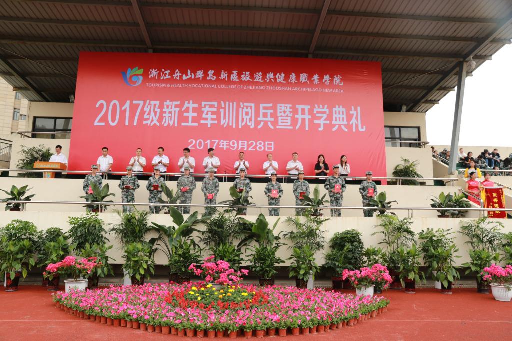 9月28日上午,浙江舟山群岛新区旅游与健康职业学院举行2017级新生军训阅兵暨开学典礼。该校党委书记陈仕俊、院长郑能波等校领导参加开学典礼。