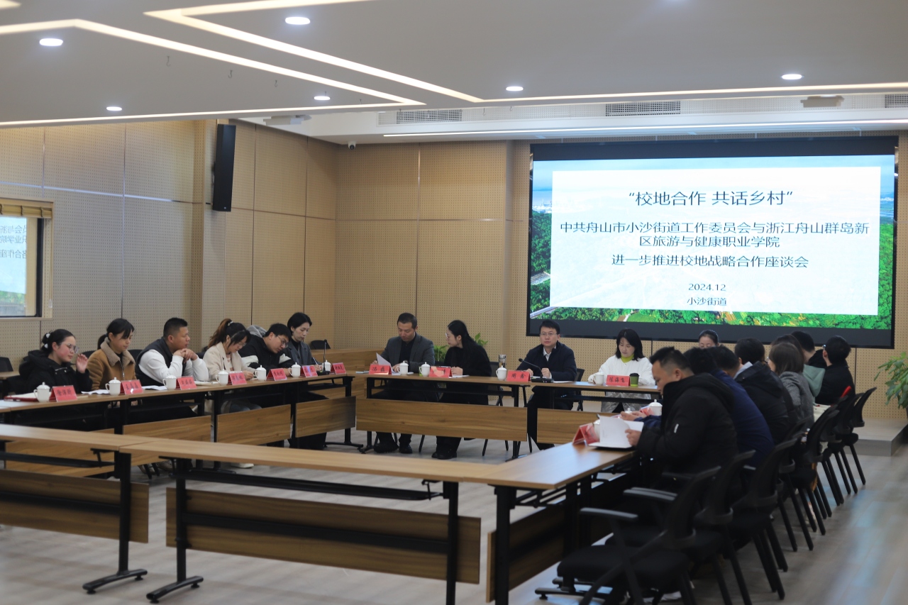 去年11月,小沙街道与浙江舟山群岛新区旅游与健康职业学院商务学院签署了校地战略合作协议,为双方的交流互促搭建了优质平台。12月11日上午,小沙街道联合舟旅健院组织召开“校地合作 共话乡村”座谈会,就2024年度合作成果和下步工作计划进行交流讨论。