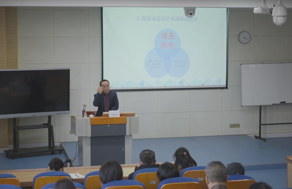 张永立主任以《做一个有情怀的建言人》为题,从为谁提、提给谁、提什么、怎么提四方面同代表们进行了交流。同时对教代会提案的基本要素、主要内容和注意事项进行解读,用典型案例深化了参会代表对教代会工作及提案撰写的认识。