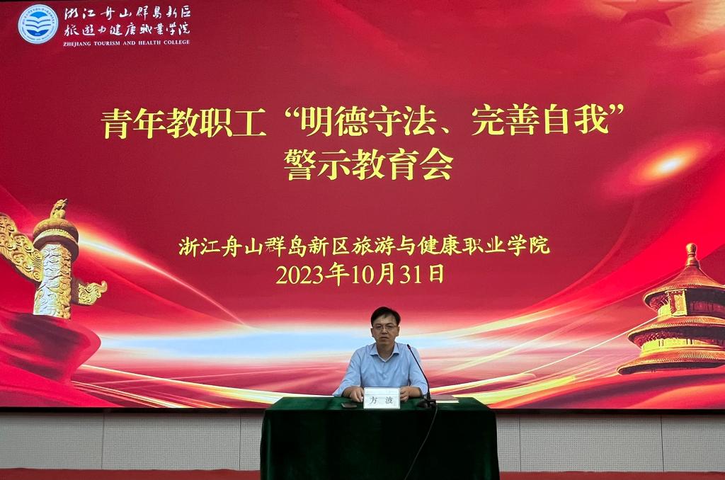 为深入贯彻习近平总书记关于加强年轻干部教育管理监督重要指示批示精神,进一步加强对青年干部的思想道德和纪法教育,近日,舟山旅游健康职业学院纪委举行“明德守法、完善自我”警示教育会,全校40周岁以下青年干部参加会议。